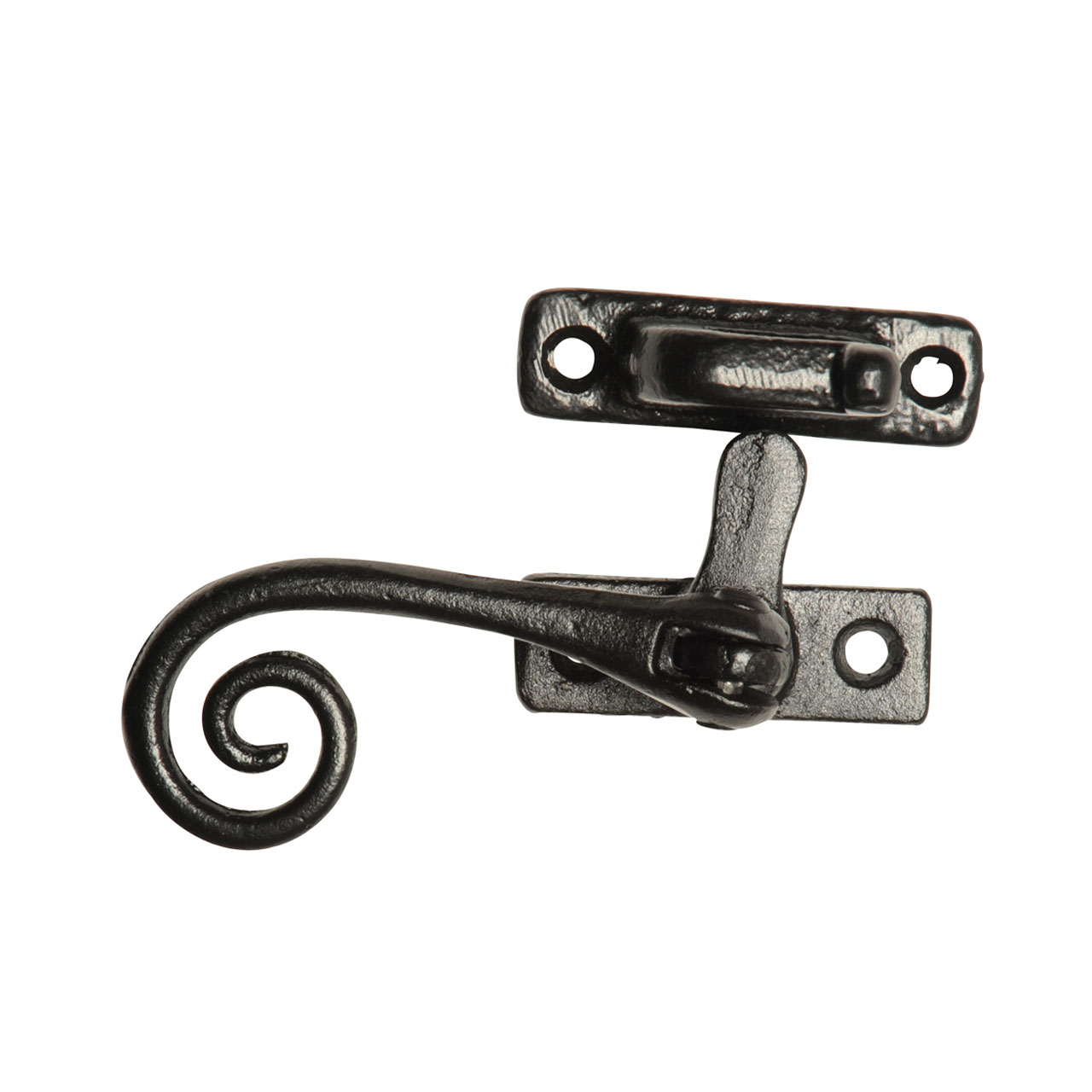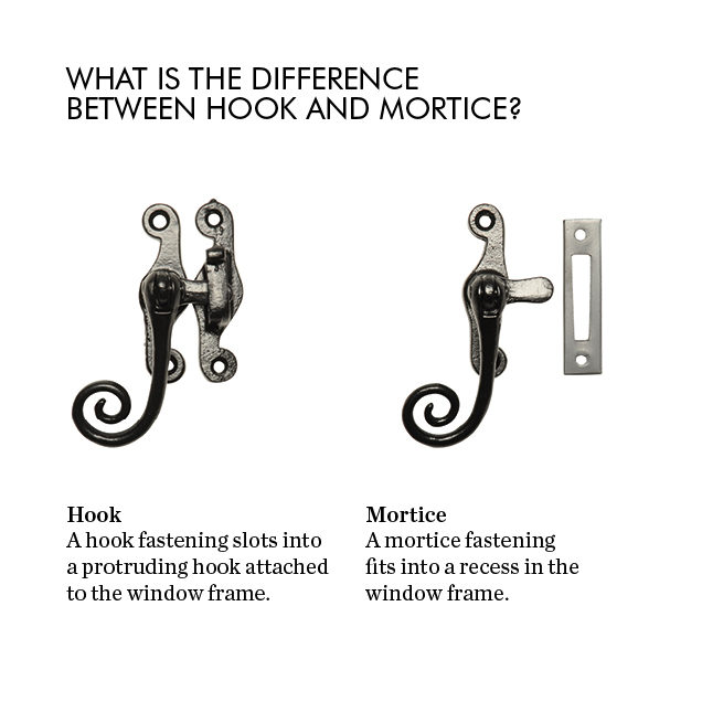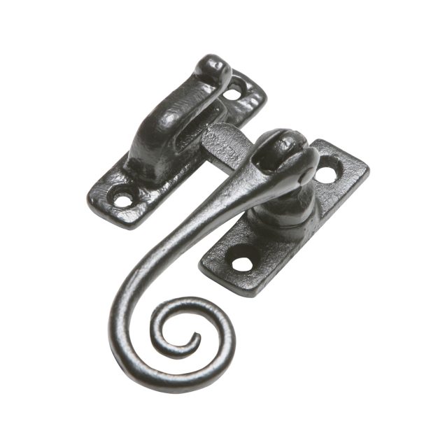 Smooth iron casement fastener with Hook plate fitting. Matches 171 casement stay. Also available in argent and pewter finish. For Mortice plate version see product 144